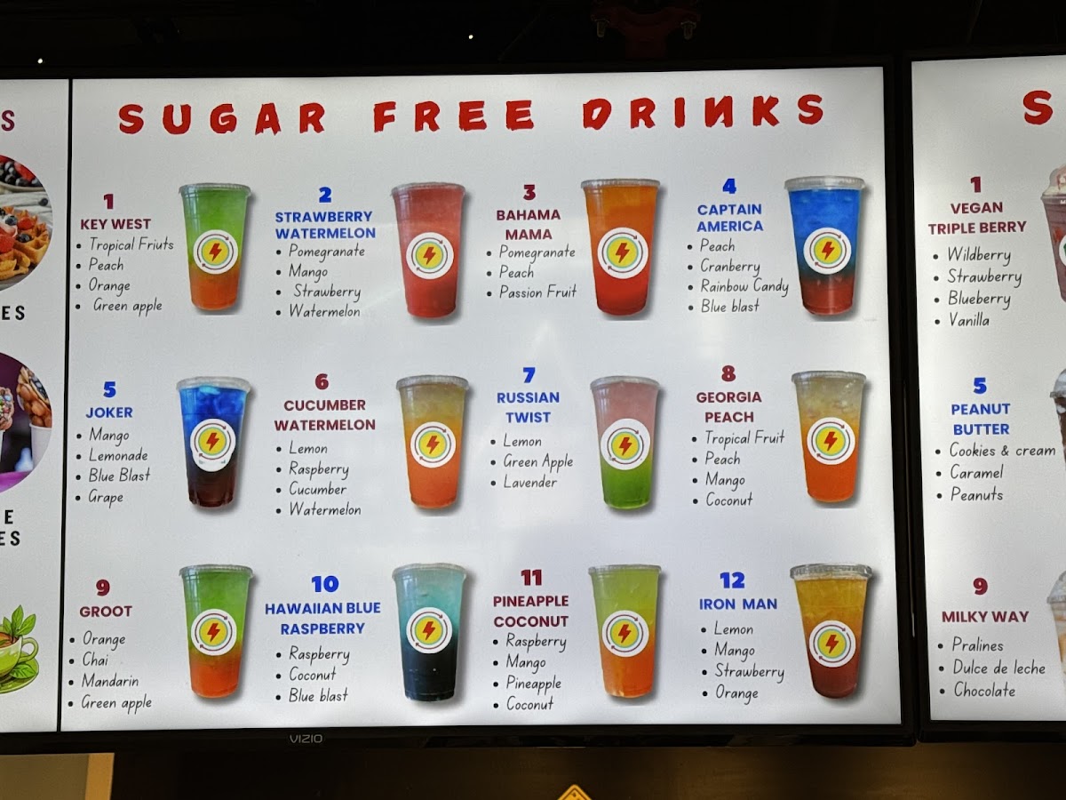 Sugar free Energy Drink (32 oz cup) 20 calories. Over 100 flavors