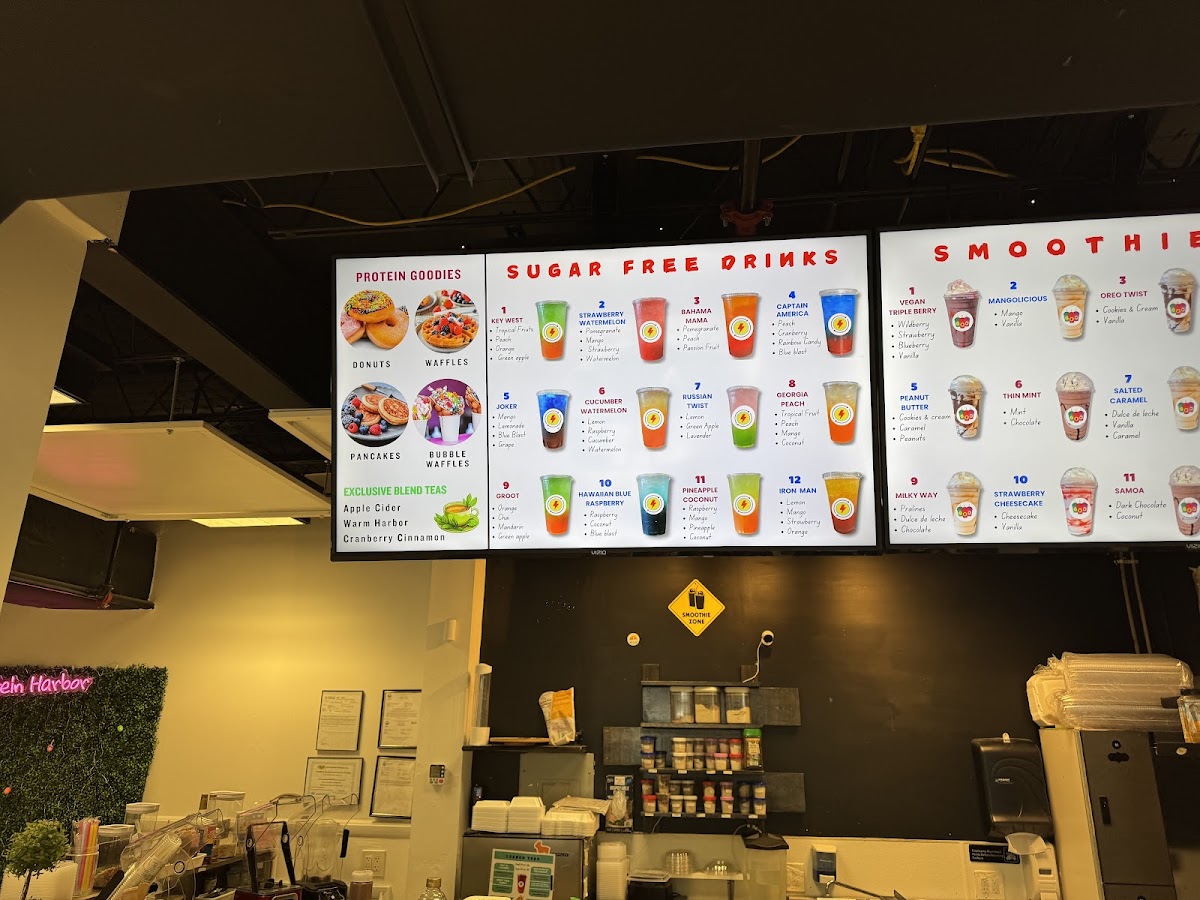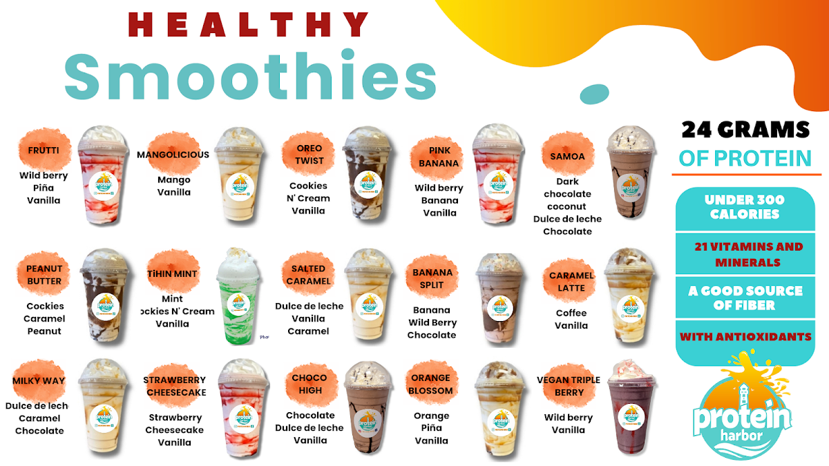 Protein Harbor offers a diverse and exciting menu that caters to health-conscious individuals and fitness enthusiasts alike. For those looking for a refreshing energy boost, their Sugar-Free Energy Drink (32 oz cup, 20 calories) comes in over 100 flavors, providing a guilt-free pick-me-up. The Protein Smoothies (24 oz cup, under 250 calories) are a must-try, available in more than 20 flavors, alongside the filling Oatmeal Protein Bowl.